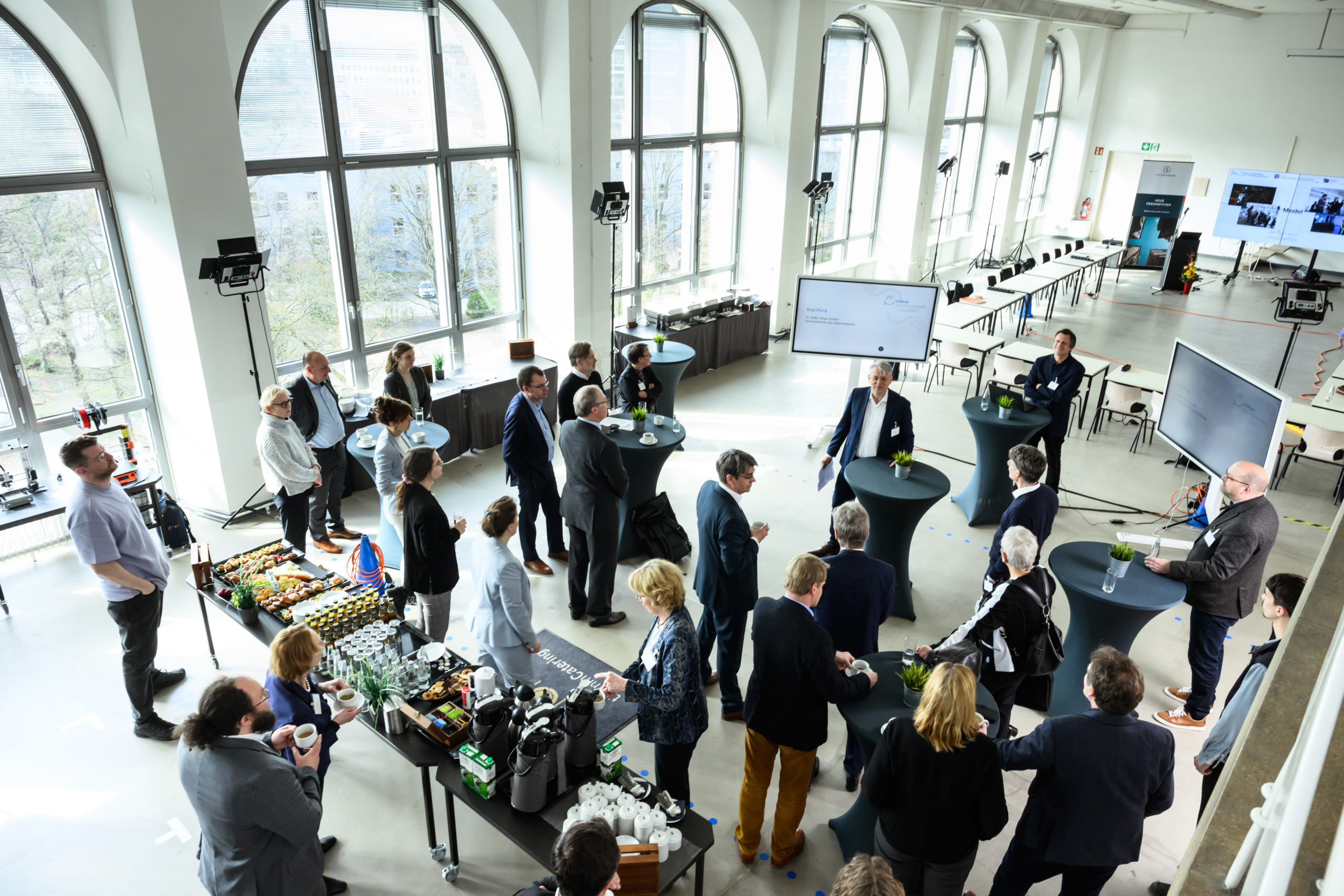 Passend zum Thema trafen sich Hochschulratsvorsitzende aus ganz Deutschland im „Alten Lesesaal“ der TU Berlin. Albert Lang, Leiter interdisziplinäres Raumlabor an der Technischen Universität Berlin, konnte den Teilnehmenden vor Ort zeigen, wie sich bestehende Hochschulräumlichkeiten in zukunftsorientierte Lehr- und Lernräume umwandeln lassen.