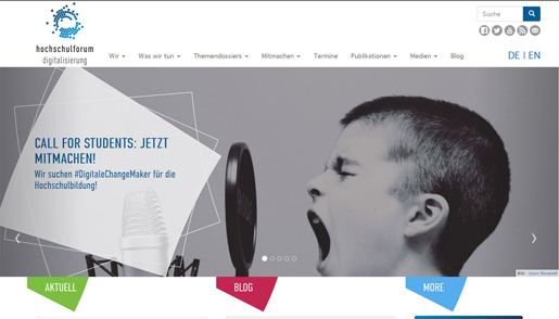 Das Hochschulforum unterstützt Hochschulen bei der strategischen Verankerung der Digitalisierung sowie der Nutzung in der Lehre und entwickelt gemeinsam mit ihnen zukunftsweisende Szenarien für Hochschulen im digitalen Zeitalter. Die Trägerschaft vom Hochschulforum Digitalisierung liegt gemeinsam beim Stifterverband, CHE Centrum für Hochschulentwicklung und der Hochschulrektorenkonferenz.Third Mission